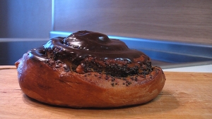 Булочки с маком и орехами в шоколадной глазури В посуду для теста влить 250 мл воды, растворить в ней дрожжи и, помешивая, всыпать половину взятой муки. Вымесить, чтобы не было комков, накрыть посуду полотенцем или салфеткой и поставить в теплое место на 45-50 минут. Когда опара подойдет, положить в нее соль, сахар, разогретое масло или маргарин добавить 1 яйцо, ванильный сахар, размешать, добавить остальную муку и хорошо вымешивать до тех пор, пока тесто не начнет отставать от стенок посуды и веселки. После этого посуду с тестом снова накрыть и вторично поставить в теплое место для подъема на 1,5 — 2 часа. После того, как тесто увеличится в объеме вдвое, выложить его на доску, посыпанную мукой, и раскатать в пласт, смазать сливочным маслом или маргарином и уложить маковый фарш, свернуть в рулет и разрезать на кусочки 2-3 сантиметра толщиной. Уложить на противень и дать булочкам подняться в теплом месте 7-10 минут, затем смазать их взбитым яйцом и поставить на 18-25 минут в духовой шкаф разогретый до 180*С для выпечки. Мука 550 г. Вода 250 мл. Дрожжи 5 г. Сахар 74 г. Соль 1/2 ч.л. Масло 100 г. Ванилин 1 ч.л. Яйцо 2 шт. Фарш из мака В кипящую воду насыпать мак, довести воду до кипения, откинуть мак на частое сито, перемешать с сахаром. Затем фарш перемешать с сырыми яйцами и рублеными орехами. Вместо сахара можно добавить мед, вместо орехов — миндаль или изюм. Мак 100 г. Орехи 50 г. Сахар 50 г. Яйцо 1 шт. Масло (для смазывания) 40 г. Сироп шоколадный для глазировки Сахар с водой сначала нагреть до 112—114°, а затем охладить до 80° и перемешать с какао-порошком. Деревянной лопаточкой растирать сироп до тех пор, пока не появится на поверхности сиропа тонкая ломающаяся корочка. Изделия, которые нужно заглазировать, опустить в сироп или нанести на них сироп…