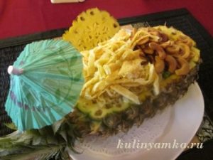 Поданный прямо в ананасе, рис с креветками и кусочками ананаса станет оригинальным блюдом и украсит любой праздничный стол. Соотношение всех ингредиентов можно изменять в желаемую...