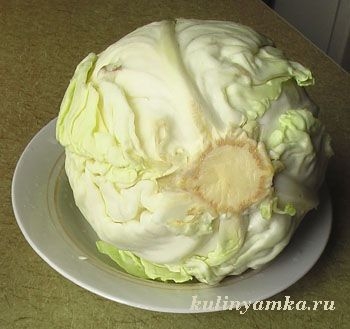 Для этого надо взять кочан капусты размером побольше, что бы было, где развернуться и во что заворачивать начинку. Капусту моем, снимаем верхние листья, если они зеленые или сломанные.