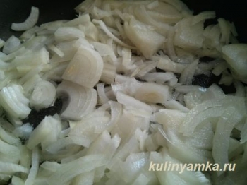 На сковороду налить масло и нагреть его. Выложить лук и пожарить минуты 2 при открытой крышке.