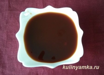 Пока печень тушится, надо приготовить соус. Для этого смешайте воду с медом, томатной пастой и соевым соусом.