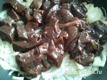 Влейте соус в сковороду и перемешайте. Теперь пусть печень тушится до готовности минут 10-15.