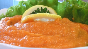 Рецепт из «Энциклопедия православной кухни» Икра из кабачков с помидорами Лук нашинковать, спассеровать с маслом (1/2 нормы), добавить мелко нарезанные помидоры и пассеровать еще 5-10 минут. Кабачки очистить, удалить сердцевину, нарезать небольшими кусками и обжарить на оставшемся масле. Затем кабачки сложить в кастрюлю с луком и помидорами, добавить лавровый лист и тушить, периодически помешивая, до тех пор, пока они не станут мягкими. Готовые кабачки пропустить через мясорубку или нарубить ножом, заправить солью, сахаром, соком лимона, охладить. Икру подать в салатнике, украсив зеленью, ломтиками помидоров, лимона. В видео рецепте: Кабачки 500 г. Лук репчатый 100 г. Помидор 150 г. Растительное масло 50 г. Сахара 1/2 ч.л. Соль 1/2 ч.л. Лимон 1/4 шт. Время приготовления 30 минут.