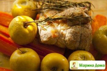 Нежное, вкусное мясо, запеченные яблоки и морковь, легкие салаты – необыкновенно вкусно!