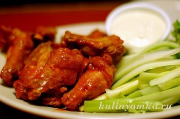 Крылышки баффало — это жареные куриные крылья в остром томатном соусе, подаваемые, как правило, с овощами.