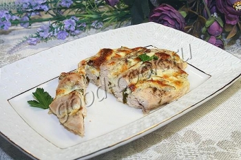 При подаче нарезать запечённое филе поперёк надрезов с начинкой.
