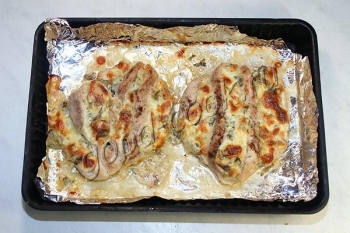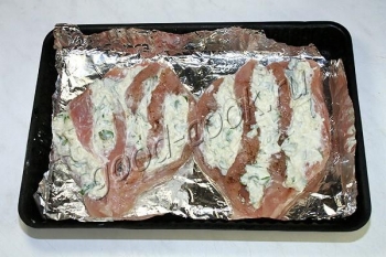 В разрезы положить начинку.