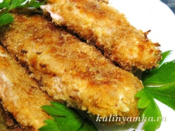 Если будете использовать панировочные сухари с приправой, то специи и пряности уже можно не добавлять. Каждый кусочек надо обмакнуть в яйцо или просто тщательно перемешать все мясо с яйцом в большой тарелке и обмакнуть в панировку. Если же сухари у вас без приправы, добавьте все, что вам нравится из приправ, в яйцо. Обязательно положите соль, а дальше уже все по вашему вкусу.
