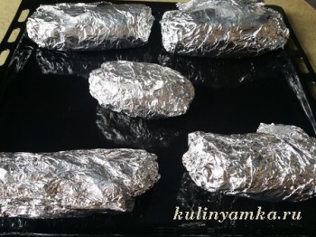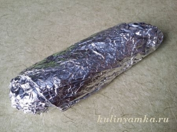Потом этот рулетик так же плотно завернуть в фольгу.