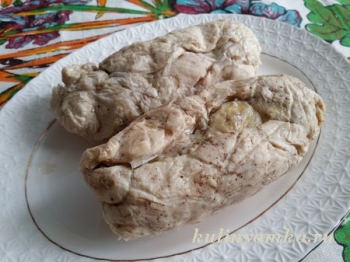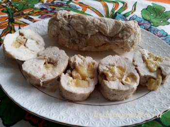 Рулетики получаются нежными, сочными, как будто вареными. Сок при этом не вытекает наружу, а остается внутри, благодаря двойной обертке.