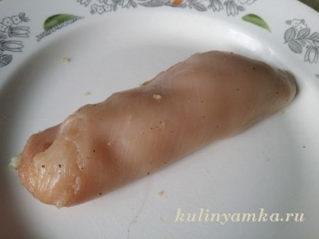 Этой смесью теперь надо тщательно сдобрить отбитое филе и дать чуток постоять мясу.
