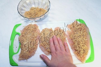Сверху равномерно посыпать панировкой и крепко прижать её.
