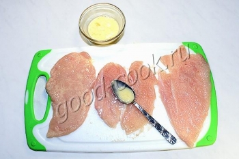 Поэтому лучше уложить отбитое филе на противень, а потом уже смазать