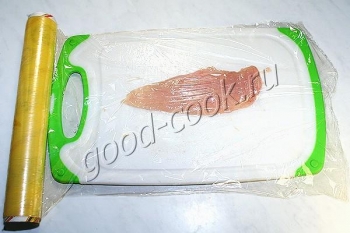 На доску положить одну пластину филе.