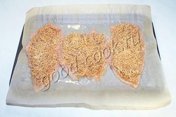 Перенести филе на противень.