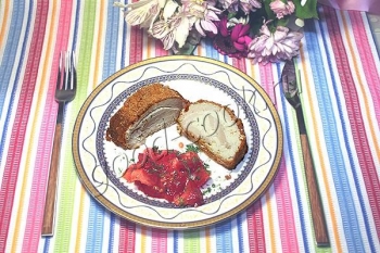 Рулет сытный, сочный и вкусный. Хрустящая корочка из панировочных сухарей