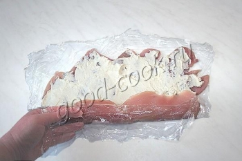Приподнимая плёнку, свернуть пласт в тугой рулет.