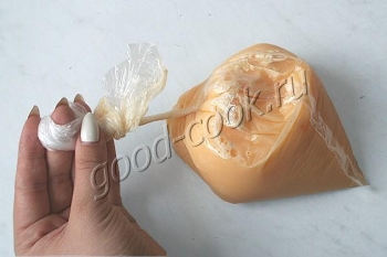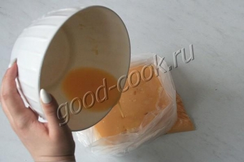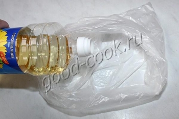 В п/э пакет налить немного растительного масла — примерно 0,5 чайной