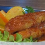 Куриные грудки, глазированные карри Смешайте муку с солью и перцем. Обваляйте в муке куриное мясо. В сотейнике разогрейте слив