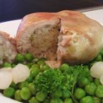Куриные мешочки Осторожно удалите из бедрышек кости, оставив кожу нетронутой. Поместите куриное мясо между двумя слоями полиэтиленовой пленки отбейте. Положите в сотейник бекон, лук, сельдерей...