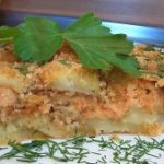 Приготовлено по рецепту из «Подарок молодым хозяйкам или средство к уменьшению расходов в домашнем хозяйстве» Елена Молоховец С. — Петербург.1901. КАРТОФЕЛЬ С ЛОСОСИНОЙ Сырого картофеля...