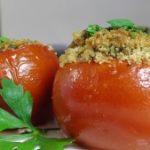 Приготовлено по рецепту из «Кулинария» 1955 г. изд. ПОМИДОРЫ, ФАРШИРОВАННЫЕ ХЛЕБНЫМИ СУХАРЯМИ Мелко измельчить сухари. Изрубить зелень петрушки и чеснок и, заправив маслом, перемешать...