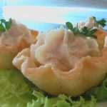 Приготовлено по рецепту из «Книга о вкусной и здоровой пище» КОРЗИНОЧКИ ИЗ СЛОЕНОГО ТЕСТА С САЛАТОМ Маленькие металлические формочки диаметром 5-6 см выложить слоеным тестом;...