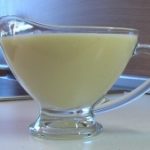 Приготовлено по рецепту из «Книга о вкусной и здоровой пище»: ВАНИЛЬНЫЙ СОУС Сахар хорошо растереть с яичными желтками и мукой. Эту массу развести горячим молоком...