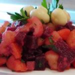 Приготовлено по рецепту из «Энциклопедия православной кухни»: ИКРА ИЗ СВЕКЛЫ ПО-МОНАСТЫРСКИ Вареную свеклу очистите, нарежьте соломкой, обжарьте в растительном масле вместе с нарезанными кольцами репчатым...