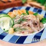 В этом рецепте бефстроганов хоть и подается в сметанном соусе, является полностью обжаренным. При желании мясо можно потушить, а потом залить соусом. Состав: говяжья вырезка...