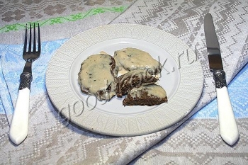 Слегка приподнять оладьи, чтобы соус затёк под них.