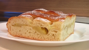 Приготовлено по рецепту из «Книга о вкусной и здоровой пище» СЛАДКИЙ ПИРОГ ИЗ ДРОЖЖЕВОГО ТЕСТА Сладкий пирог делают с начинкой из повидла, джема, варенья или яблок. Готовое тесто раскатать слоем, примерно, 1/2 см, поместить на приготовленный противень, лист или круглую сковороду, обрезать лишнее тесто, положить начинку и загнуть края на 1,5-2 см. Из остатков теста нарезать узкие полосы и сделать поверх начинки решетку. Полоску теста прикрепить к краям пирога яйцом. Затем поставить пирог в теплое место, чтобы он поднялся. Когда пирог поднимется, смазать верх взбитым яйцом и поставить в жаркий духовой шкаф на 20-30 минут. Готовый пирог осторожно снять с противня, положить на бумагу, обсыпать сверху сахарной пудрой, смешанной с ванилином, нарезать, уложить на блюдо и подать. К сладкому пирогу можно подать молоко или фруктовый сок. Для приготовления теста на 1 кг муки обычно берется 30-40 г дрожжей, 2 стакана воды или молока, 2-4 столовые ложки жира, 2-3 яйца, 1 ст. ложка сахара и 1 чайная ложка соли.   В видео рецепте: Мука 400г. Яйцо 1 шт. Сахар 50 г. Дрожжи сухие 1,5 ч.л. или  20г. прессованых Соль 1/2 ч.л. Вода 200 мл. Масло 30 м л. Яблоко 2 шт. Яйцо для смазки 1 шт.   Время приготовления 180 минут.