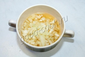 Лук нарезать маленькими кубиками и замочить в уксусе.