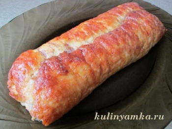 Все оказалось на много лучше, чем я ожидала. Рулет получился вкусный, сочный, нежный. Хорошо зарумянился и не сгорел. В общем, в домашнее меню его можно включать смело. Единственное, что останавливает сразу же повторить его еще раз, так это калорийность блюда. Уж очень она в нем приличная. Поэтому, следящие за калорийностью своего питания, будьте бдительны!