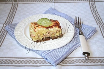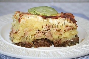 картошкой, остаётся мягким. Хлебный слой придаёт запеканке не только