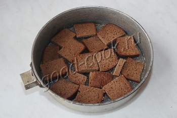 Уложить кусочки хлеба в форму.