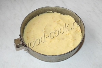 Намазать сырную смесь на верхний слой пюре.